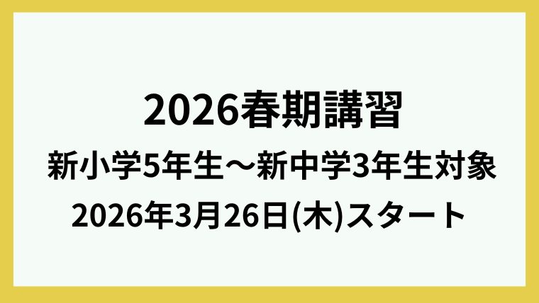 こちらの記事は2026年3月26日よりスタートいたします、【2026年春期講習】についてになります。対象は新小学5年生~新中学1年生になります。